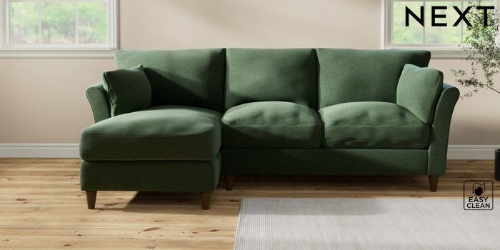 7.3.1 Buy Hartley Relaxed Sit Medium Sofa Chaise - Left Hand Fine Chenille Easy Clean Mid Khaki Green Low Conical - Mid from the Laura Ashley online shop