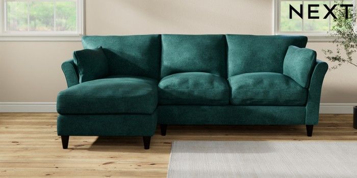 7.3.1 Buy Hartley Relaxed Sit Medium Sofa Chaise - Left Hand Plush Chenille Dark Teal Green Low Conical - Dark from the Laura Ashley online shop