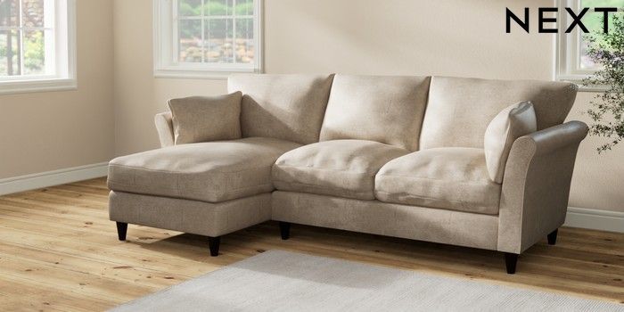 7.2.10 Buy Hartley Relaxed Sit Medium Sofa Chaise - Left Hand Plush Chenille Light Natural Low Conical - Dark from the Laura Ashley online shop Click here to use our website with more accessibility support, for example screen readers