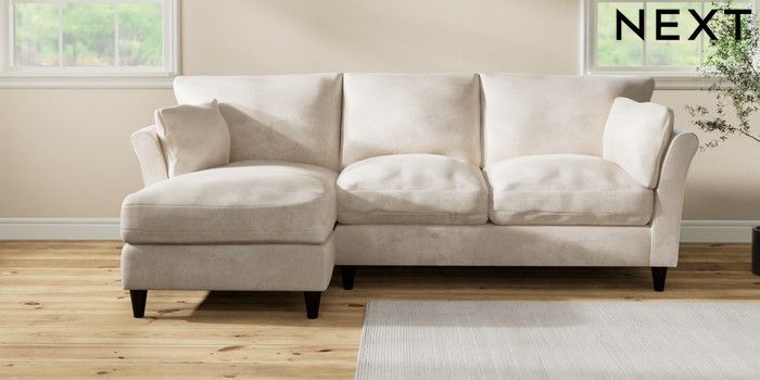 7.3.1 Buy Hartley Relaxed Sit Medium Sofa Chaise - Left Hand Plush Chenille Oyster Low Conical - Dark from the Laura Ashley online shop