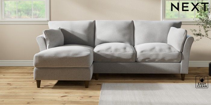 7.3.1 Buy Hartley Relaxed Sit Medium Sofa Chaise - Left Hand Tweedy Blend Easy Clean Light Silver Grey Low Conical - Mid from the Laura Ashley online shop