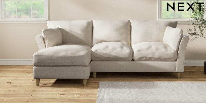 7.3.1 Buy Hartley Relaxed Sit Medium Sofa Chaise - Left Hand Tweedy Chenille Oyster Low Conical - Light from the Laura Ashley online shop
