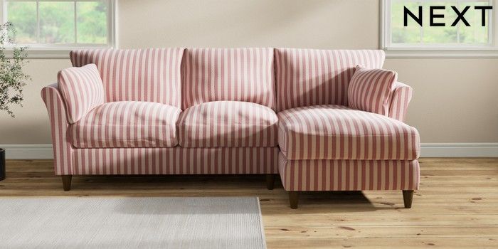 7.3.1 Buy Hartley Relaxed Sit Medium Sofa Chaise - Right Hand Bold Chenille Stripe Dark Pink Low Conical - Mid from the Laura Ashley online shop