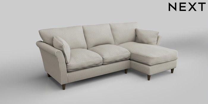 6.12.1 Buy Hartley Relaxed Sit Medium Sofa Chaise - Right Hand Chenille Stripe Moss Green Low Conical - Mid from the Laura Ashley online shop Click here to use our website with more accessibility support, for example screen readers