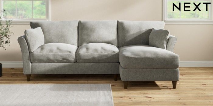 7.3.1 Buy Hartley Relaxed Sit Medium Sofa Chaise - Right Hand Chunky Chenille Light Grey Low Conical - Mid from the Laura Ashley online shop