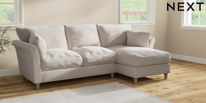 7.2.10 Buy Hartley Relaxed Sit Medium Sofa Chaise - Right Hand Chunky Chenille Oyster Low Conical - Light from the Laura Ashley online shop Click here to use our website with more accessibility support, for example screen readers
