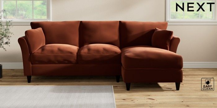 7.3.1 Buy Hartley Relaxed Sit Medium Sofa Chaise - Right Hand Plush Velvet Easy Clean Ginger Orange Low Conical - Dark from the Laura Ashley online shop Click here to use our website with more accessibility support, for example screen readers
