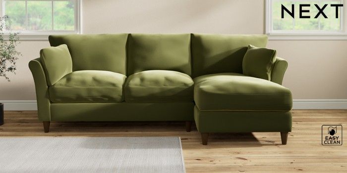 7.3.1 Buy Hartley Relaxed Sit Medium Sofa Chaise - Right Hand Plush Velvet Easy Clean Mid Olive Green Low Conical - Mid from the Laura Ashley online shop Click here to use our website with more accessibility support, for example screen readers