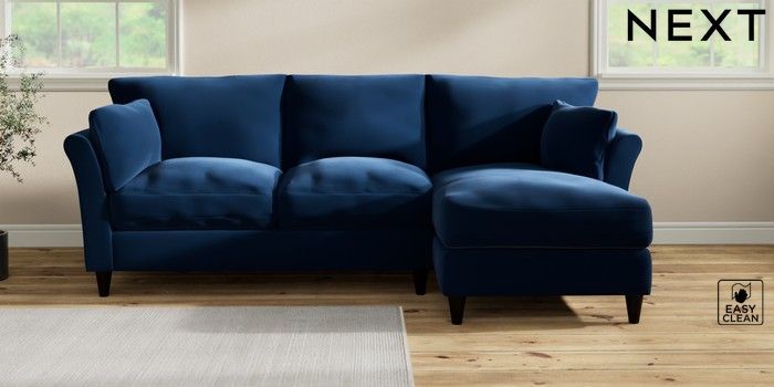 7.3.1 Buy Hartley Relaxed Sit Medium Sofa Chaise - Right Hand Plush Velvet Easy Clean Navy Blue Low Conical - Dark from the Laura Ashley online shop Click here to use our website with more accessibility support, for example screen readers