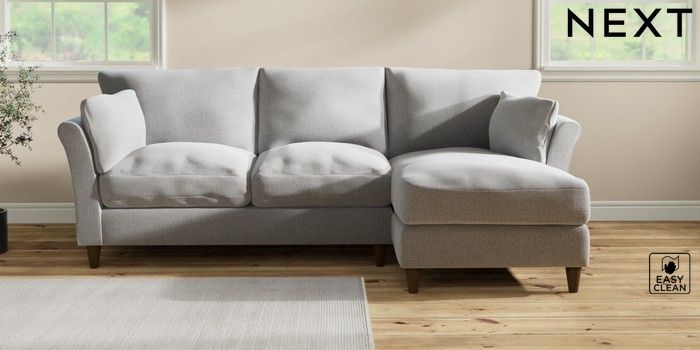7.3.1 Buy Hartley Relaxed Sit Medium Sofa Chaise - Right Hand Tweedy Blend Easy Clean Light Silver Grey Low Conical - Mid from the Laura Ashley online shop