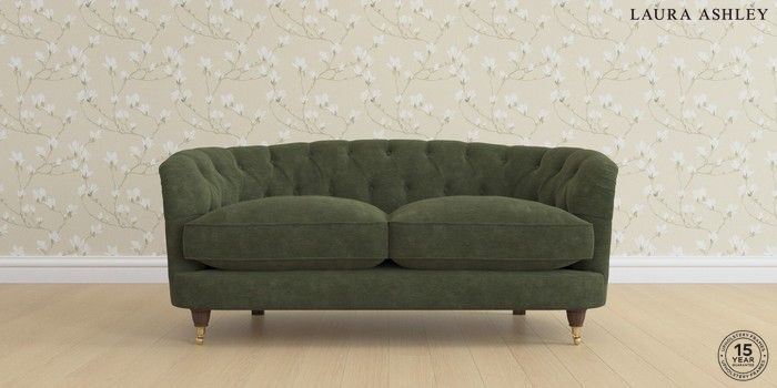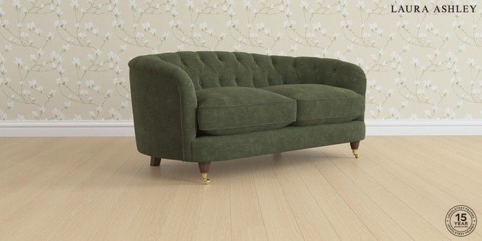 7.0.3 Buy Hathersage by Laura Ashley 2 Seater Sofa Alwyn Velvet Ivy Green Low Brass Castor - Chestnut from the Laura Ashley online shop Click here to use our website with more accessibility support, for example screen readers