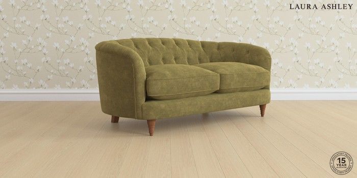 7.0.3 Buy Hathersage by Laura Ashley 2 Seater Sofa Alwyn Velvet Olive Green Low Turned - Teak from the Laura Ashley online shop Click here to use our website with more accessibility support, for example screen readers