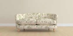The Laura Ashley Hathersage is a signature deep sit curved sofa in the Chesterfield style. Featuring deep buttoned arms matching the height of the back of the sofa, combined with deep seat cushions filled with foam core and fibre wrap interiors, this sofa is perfect for relaxing in. A gently curved front seat profile and turned legs with brass or chrome castors complete this design.