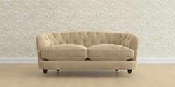 The Laura Ashley Hathersage is a signature deep sit curved sofa in the Chesterfield style. Featuring deep buttoned arms matching the height of the back of the sofa, combined with deep seat cushions filled with foam core and fibre wrap interiors, this sofa is perfect for relaxing in. A gently curved front seat profile and turned legs with brass or chrome castors complete this design.