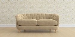 The Laura Ashley Hathersage is a signature deep sit curved sofa in the Chesterfield style. Featuring deep buttoned arms matching the height of the back of the sofa, combined with deep seat cushions filled with foam core and fibre wrap interiors, this sofa is perfect for relaxing in. A gently curved front seat profile and turned legs with brass or chrome castors complete this design.