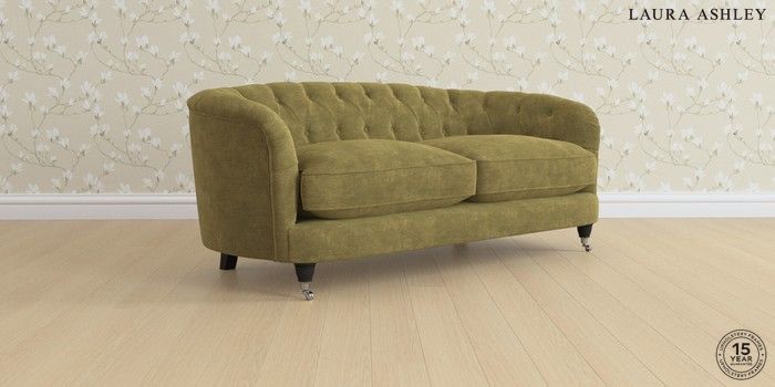 7.0.3 Buy Hathersage by Laura Ashley 3 Seater Small Sofa Alwyn Velvet Olive Green Low Chrome Castor - Black from the Laura Ashley online shop Click here to use our website with more accessibility support, for example screen readers