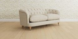 The Laura Ashley Hathersage is a signature deep sit curved sofa in the Chesterfield style. Featuring deep buttoned arms matching the height of the back of the sofa, combined with deep seat cushions filled with foam core and fibre wrap interiors, this sofa is perfect for relaxing in. A gently curved front seat profile and turned legs with brass or chrome castors complete this design.