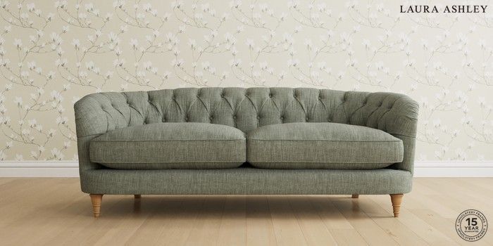 7.0.3 Buy Hathersage by Laura Ashley 3 Seater Small Sofa Bainton Sage Green Low Turned - Light Oak from the Laura Ashley online shop Click here to use our website with more accessibility support, for example screen readers