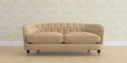 The Laura Ashley Hathersage is a signature deep sit curved sofa in the Chesterfield style. Featuring deep buttoned arms matching the height of the back of the sofa, combined with deep seat cushions filled with foam core and fibre wrap interiors, this sofa is perfect for relaxing in. A gently curved front seat profile and turned legs with brass or chrome castors complete this design.