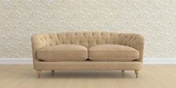 The Laura Ashley Hathersage is a signature deep sit curved sofa in the Chesterfield style. Featuring deep buttoned arms matching the height of the back of the sofa, combined with deep seat cushions filled with foam core and fibre wrap interiors, this sofa is perfect for relaxing in. A gently curved front seat profile and turned legs with brass or chrome castors complete this design.