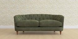 The Laura Ashley Hathersage is a signature deep sit curved sofa in the Chesterfield style. Featuring deep buttoned arms matching the height of the back of the sofa, combined with deep seat cushions filled with foam core and fibre wrap interiors, this sofa is perfect for relaxing in. A gently curved front seat profile and turned legs with brass or chrome castors complete this design.