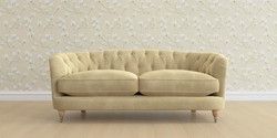 The Laura Ashley Hathersage is a signature deep sit curved sofa in the Chesterfield style. Featuring deep buttoned arms matching the height of the back of the sofa, combined with deep seat cushions filled with foam core and fibre wrap interiors, this sofa is perfect for relaxing in. A gently curved front seat profile and turned legs with brass or chrome castors complete this design.