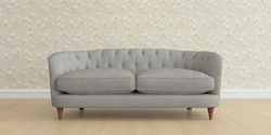 The Laura Ashley Hathersage is a signature deep sit curved sofa in the Chesterfield style. Featuring deep buttoned arms matching the height of the back of the sofa, combined with deep seat cushions filled with foam core and fibre wrap interiors, this sofa is perfect for relaxing in. A gently curved front seat profile and turned legs with brass or chrome castors complete this design.
