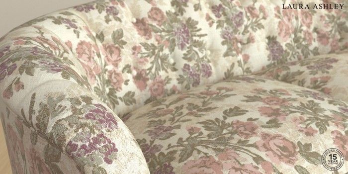 The Laura Ashley Hathersage is a signature deep sit curved sofa in the Chesterfield style. Featuring deep buttoned arms matching the height of the back of the sofa, combined with deep seat cushions filled with foam core and fibre wrap interiors, this sofa is perfect for relaxing in. A gently curved front seat profile and turned legs with brass or chrome castors complete this design.