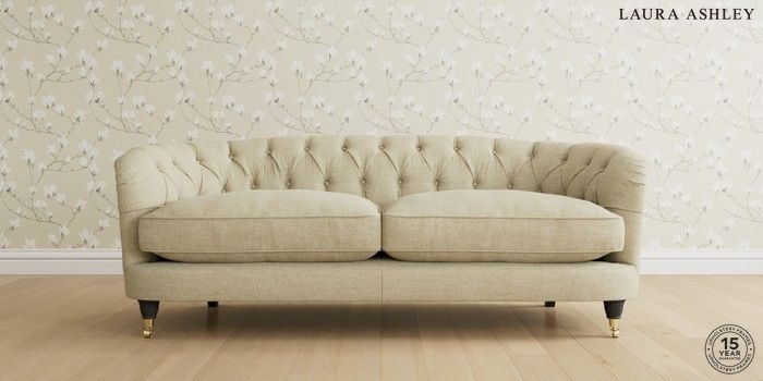 7.0.3 Buy Hathersage by Laura Ashley 3 Seater Small Sofa Harley Natural Low Brass Castor - Black from the Laura Ashley online shop Click here to use our website with more accessibility support, for example screen readers