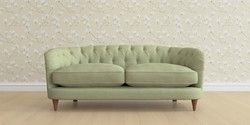 The Laura Ashley Hathersage is a signature deep sit curved sofa in the Chesterfield style. Featuring deep buttoned arms matching the height of the back of the sofa, combined with deep seat cushions filled with foam core and fibre wrap interiors, this sofa is perfect for relaxing in. A gently curved front seat profile and turned legs with brass or chrome castors complete this design.