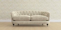 The Laura Ashley Hathersage is a signature deep sit curved sofa in the Chesterfield style. Featuring deep buttoned arms matching the height of the back of the sofa, combined with deep seat cushions filled with foam core and fibre wrap interiors, this sofa is perfect for relaxing in. A gently curved front seat profile and turned legs with brass or chrome castors complete this design.