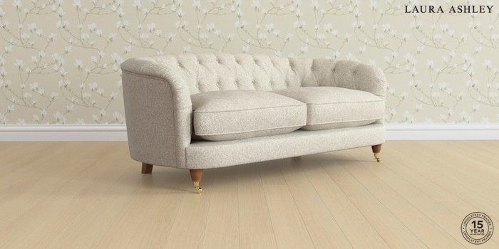 7.0.3 Buy Hathersage by Laura Ashley 3 Seater Small Sofa Tichwell Stone Natural Low Brass Castor - Teak from the Laura Ashley online shop Click here to use our website with more accessibility support, for example screen readers