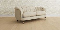 The Laura Ashley Hathersage is a signature deep sit curved sofa in the Chesterfield style. Featuring deep buttoned arms matching the height of the back of the sofa, combined with deep seat cushions filled with foam core and fibre wrap interiors, this sofa is perfect for relaxing in. A gently curved front seat profile and turned legs with brass or chrome castors complete this design.