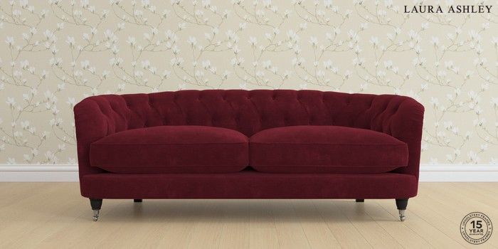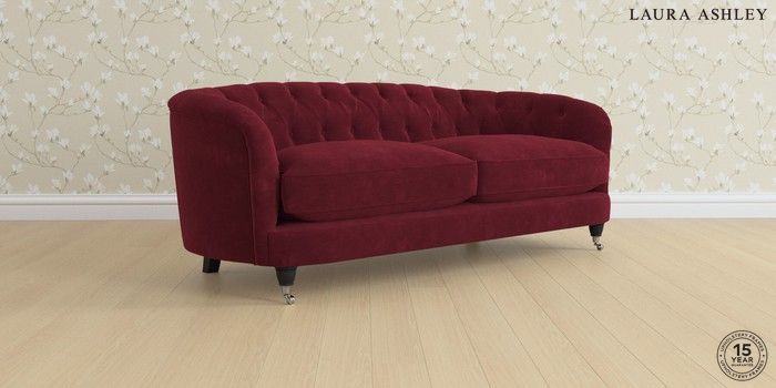 7.0.3 Buy Hathersage by Laura Ashley 3 Seater Sofa Alwyn Velvet Burgundy Red Low Chrome Castor - Black from the Laura Ashley online shop Click here to use our website with more accessibility support, for example screen readers