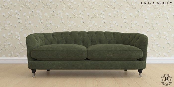 7.0.3 Buy Hathersage by Laura Ashley 3 Seater Sofa Alwyn Velvet Ivy Green Low Chrome Castor - Black from the Laura Ashley online shop Click here to use our website with more accessibility support, for example screen readers
