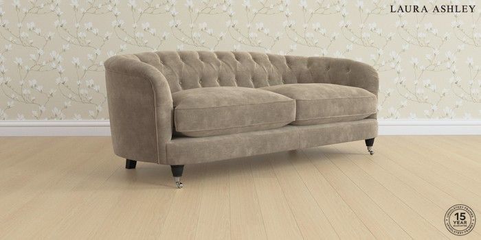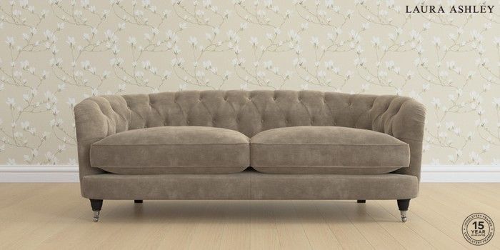7.0.3 Buy Hathersage by Laura Ashley 3 Seater Sofa Alwyn Velvet Truffle Natural Low Chrome Castor - Black from the Laura Ashley online shop Click here to use our website with more accessibility support, for example screen readers