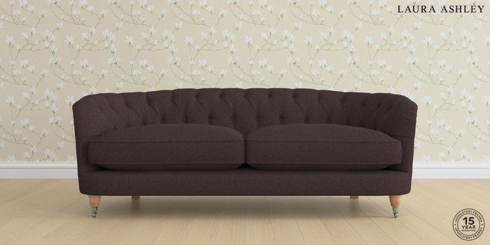 7.0.3 Buy Hathersage by Laura Ashley 3 Seater Sofa Bainton Chocolate Brown Low Chrome Castor - Light Oak from the Laura Ashley online shop Click here to use our website with more accessibility support, for example screen readers