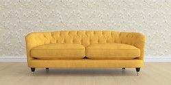 The Laura Ashley Hathersage is a signature deep sit curved sofa in the Chesterfield style. Featuring deep buttoned arms matching the height of the back of the sofa, combined with deep seat cushions filled with foam core and fibre wrap interiors, this sofa is perfect for relaxing in. A gently curved front seat profile and turned legs with brass or chrome castors complete this design.