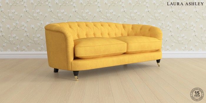 7.0.3 Buy Hathersage by Laura Ashley 3 Seater Sofa Bainton Ochre Yellow Low Brass Castor - Black from the Laura Ashley online shop Click here to use our website with more accessibility support, for example screen readers