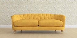 The Laura Ashley Hathersage is a signature deep sit curved sofa in the Chesterfield style. Featuring deep buttoned arms matching the height of the back of the sofa, combined with deep seat cushions filled with foam core and fibre wrap interiors, this sofa is perfect for relaxing in. A gently curved front seat profile and turned legs with brass or chrome castors complete this design.