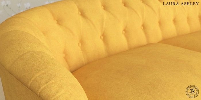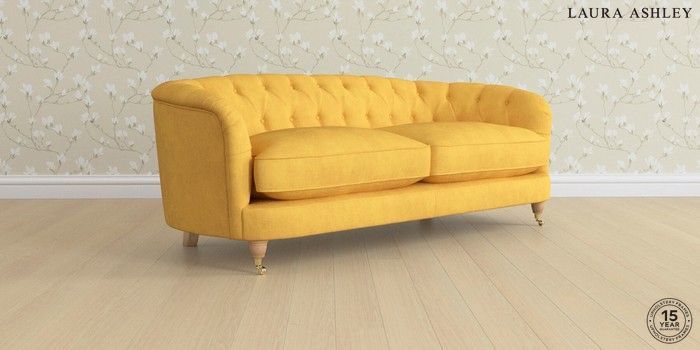 7.0.3 Buy Hathersage by Laura Ashley 3 Seater Sofa Bainton Ochre Yellow Low Brass Castor - Light Oak from the Laura Ashley online shop Click here to use our website with more accessibility support, for example screen readers