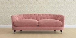 The Laura Ashley Hathersage is a signature deep sit curved sofa in the Chesterfield style. Featuring deep buttoned arms matching the height of the back of the sofa, combined with deep seat cushions filled with foam core and fibre wrap interiors, this sofa is perfect for relaxing in. A gently curved front seat profile and turned legs with brass or chrome castors complete this design.