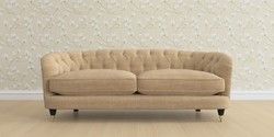 The Laura Ashley Hathersage is a signature deep sit curved sofa in the Chesterfield style. Featuring deep buttoned arms matching the height of the back of the sofa, combined with deep seat cushions filled with foam core and fibre wrap interiors, this sofa is perfect for relaxing in. A gently curved front seat profile and turned legs with brass or chrome castors complete this design.