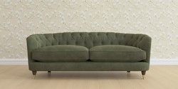 The Laura Ashley Hathersage is a signature deep sit curved sofa in the Chesterfield style. Featuring deep buttoned arms matching the height of the back of the sofa, combined with deep seat cushions filled with foam core and fibre wrap interiors, this sofa is perfect for relaxing in. A gently curved front seat profile and turned legs with brass or chrome castors complete this design.