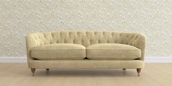The Laura Ashley Hathersage is a signature deep sit curved sofa in the Chesterfield style. Featuring deep buttoned arms matching the height of the back of the sofa, combined with deep seat cushions filled with foam core and fibre wrap interiors, this sofa is perfect for relaxing in. A gently curved front seat profile and turned legs with brass or chrome castors complete this design.
