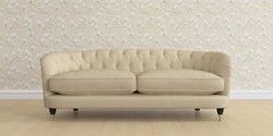 The Laura Ashley Hathersage is a signature deep sit curved sofa in the Chesterfield style. Featuring deep buttoned arms matching the height of the back of the sofa, combined with deep seat cushions filled with foam core and fibre wrap interiors, this sofa is perfect for relaxing in. A gently curved front seat profile and turned legs with brass or chrome castors complete this design.
