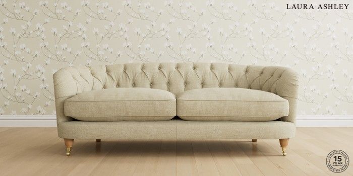 7.0.3 Buy Hathersage by Laura Ashley 3 Seater Sofa Harley Natural Low Brass Castor - Light Oak from the Laura Ashley online shop Click here to use our website with more accessibility support, for example screen readers