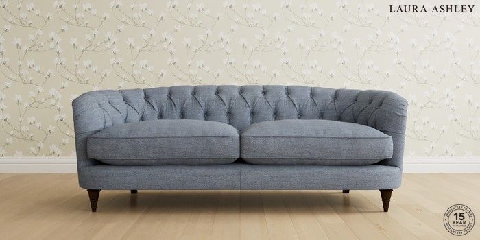 7.0.3 Buy Hathersage by Laura Ashley 3 Seater Sofa Harley Seaspray Blue Low Turned - Chestnut from the Laura Ashley online shop Click here to use our website with more accessibility support, for example screen readers