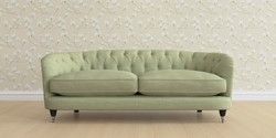 The Laura Ashley Hathersage is a signature deep sit curved sofa in the Chesterfield style. Featuring deep buttoned arms matching the height of the back of the sofa, combined with deep seat cushions filled with foam core and fibre wrap interiors, this sofa is perfect for relaxing in. A gently curved front seat profile and turned legs with brass or chrome castors complete this design.