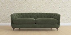 The Laura Ashley Hathersage is a signature deep sit curved sofa in the Chesterfield style. Featuring deep buttoned arms matching the height of the back of the sofa, combined with deep seat cushions filled with foam core and fibre wrap interiors, this sofa is perfect for relaxing in. A gently curved front seat profile and turned legs with brass or chrome castors complete this design.